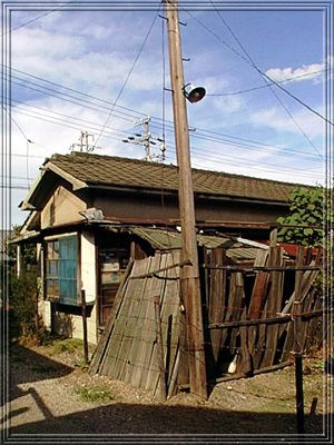 まるで西岸良平のマンガに出てくるような社宅を見つけた。 すでに封鎖されたその家の回りは私有地のせいか舗装もされておらず、 少し傾いた木の電柱もなおさら30年代の面影を感じさせる。 私はひとりで、しばしのタイムスリップを楽しんでいた。 戻る